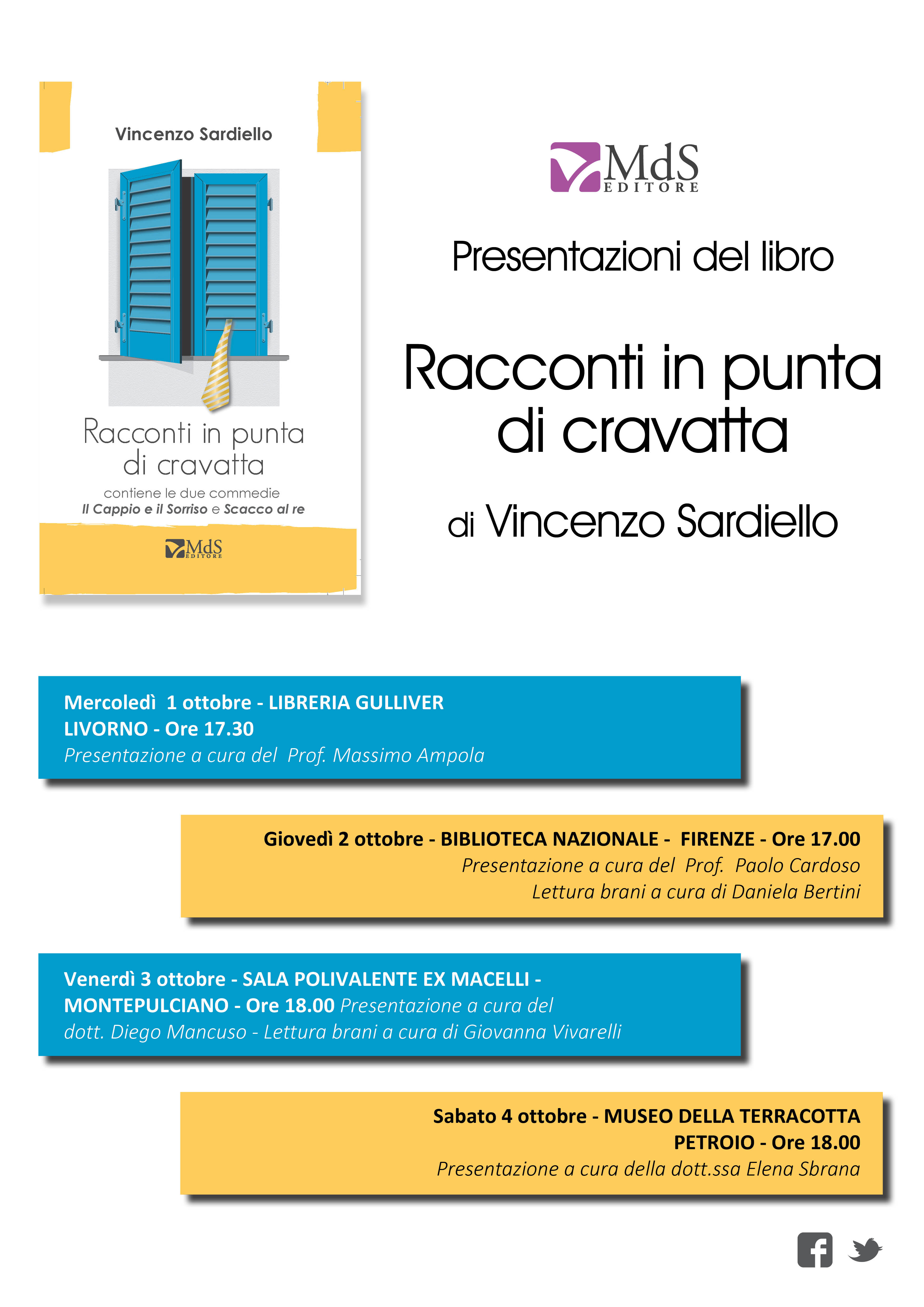 Fervono i preparativi per la nuova trasferta del libro “Racconti in punta di cravatta” di Vincenzo Sardiello che, da mercoledì 1 a sabato 4 ottobre, sarà protagonista della scena culturale toscana.
